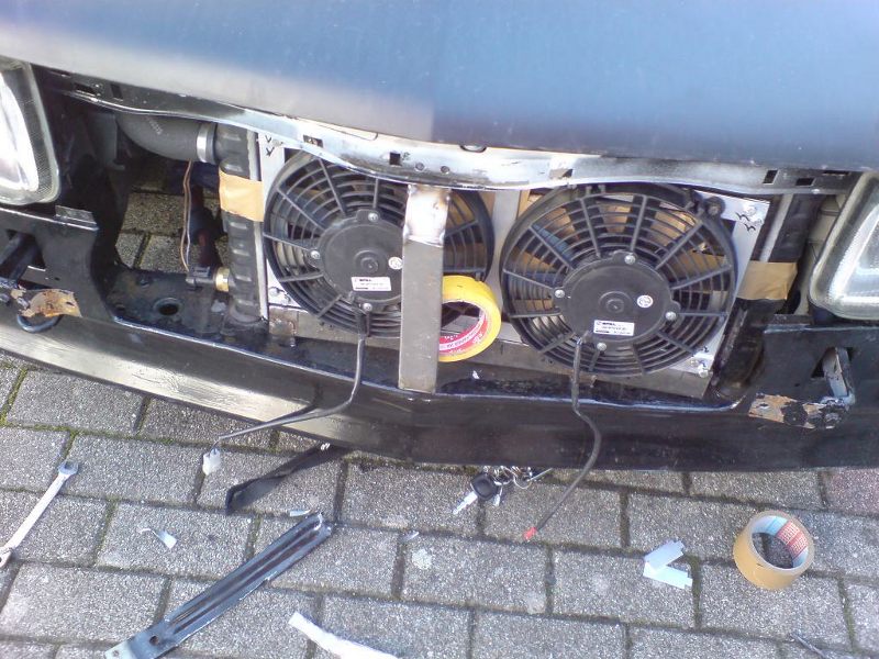 Also da ich die Spal nicht mit den Schrauben in die Kühlrippen bohren wollte, hab ich ein Aluminiumgestell gebaut.