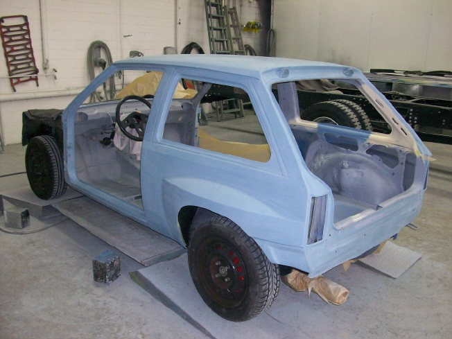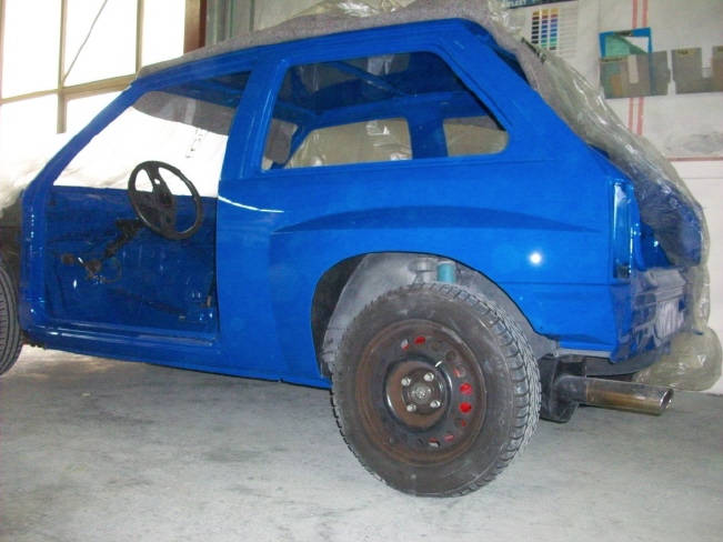 Und dann war ich wieder mal beim Lackierer und er hat tatsächlich begonnen mit der karosserie... :D Seitenwände gespachtelt und aussen und innen gefüllert (Füller leicht blau eingefärbt keine Ahnung wofür das gut sein soll aber egal) Geschliffen und mehr oder weniger bereit für die Lackierung... Als ich aber sah das er tatsächlich teilweise wieder Kit reingeschmiert hatte hinten um die Radkästen hat mich fast der Schlag getroffen... :evil: :? :cry: :x :shock: dann musste halt einer alles wieder rauskratzen und reinigen etc... zum Glück noch gesehen bevor die Farbe drauf gekommen ist... hab dann ein bisschen geholfen wieder entfernen aber hab mich natürlich schön geärgert... Ich kratze in vielen Mühsamen Stunden alles weg und der schmiert wieder drauf... naja jetzt is es wieder wie vorher... Wer will den schon Kit auf einem Rennwagen der wird sowieso überall reinpissen und hab ja kein Teppich mehr drin der sich vollsaugen kann...