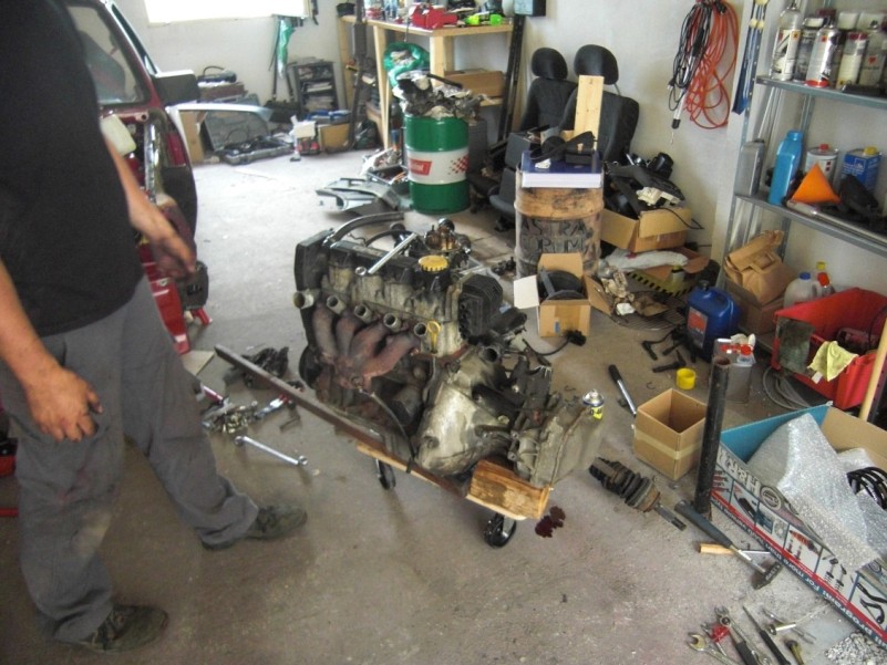 Dann kam mein Hallennachbar an und hat mir kurzerhand geholfen den Motor an seinen Platz zu bekommen.