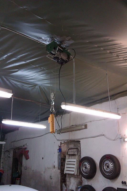 Nachdem der Motorkran heut auch an der Decke/Stahlträger hängt,
