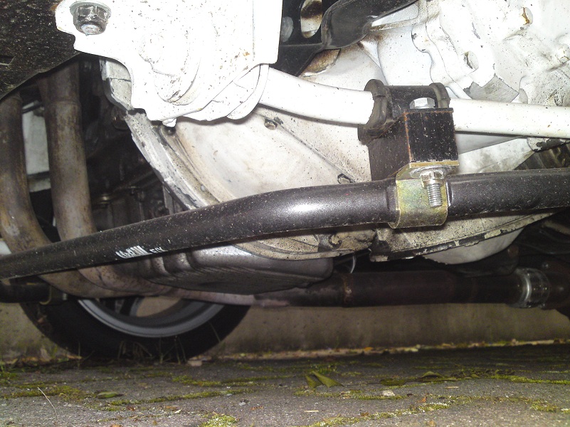 Der Stahlklotz zwischen Stabi und Zugstrebe ist um den Stabi tieferzulegen, weil er sonst nicht passen würde. Er würde sonst an dem Fächerkrümmer anstoßen.