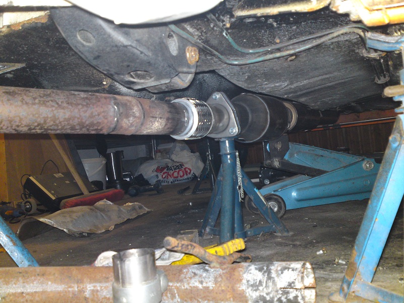 Auspuffanlage besteht nun aus dem originalen Fächerkrümmer über ein Flexrohr verbunden mit einem Euro 2 Kat(HJS) zu Mittel-und Endschalldämpfer von JettexFortex(Gruppe A) mit verlängertem Endrohr 70mm