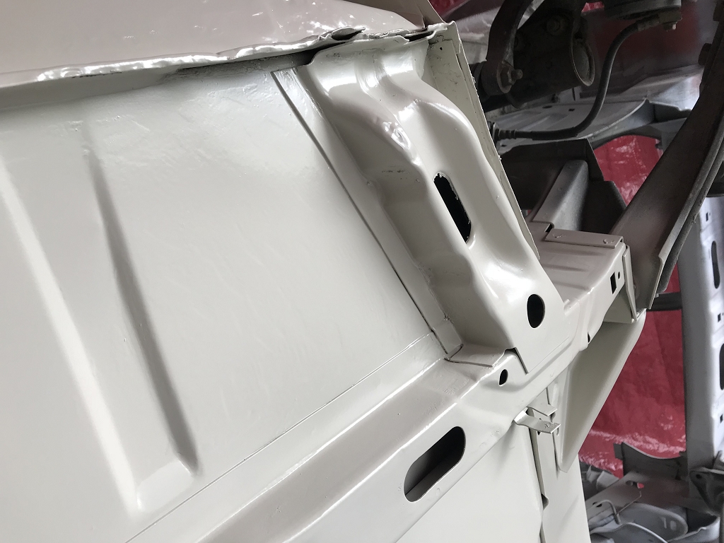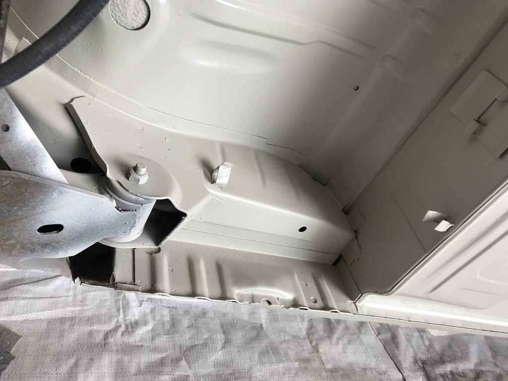 Frontblech eingeschweißt und die Falze verkittet, sowie mit Rostschutzgrund besprüht