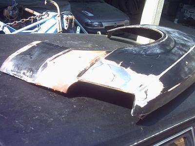 Die VorfaceKotflügel entbeult und gespachtelt.