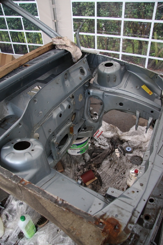 Momentan bin ich noch in den hinteren Radkästen zu Gange, erst dann wird dem Blech der Prozess gemacht. Und wie solls anders sein hab ich noch ein Loch gefunden...