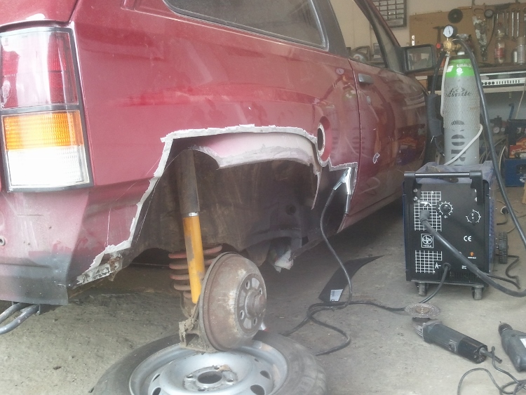 Den Radlauf hab ich angepasst, den Pfusch vom Vorgänger entfernt, den hintersten Teil des Innenradhauses angepasst und eingeschweißt, morgen kommt der vorderste Teil vom Innenradlauf rein und hoffentlich der Aussenradlauf. Dann noch Schweller anfertigen und den Rest der Seitenwand wieder einsetzen...freu mich schon auf`s spachteln...