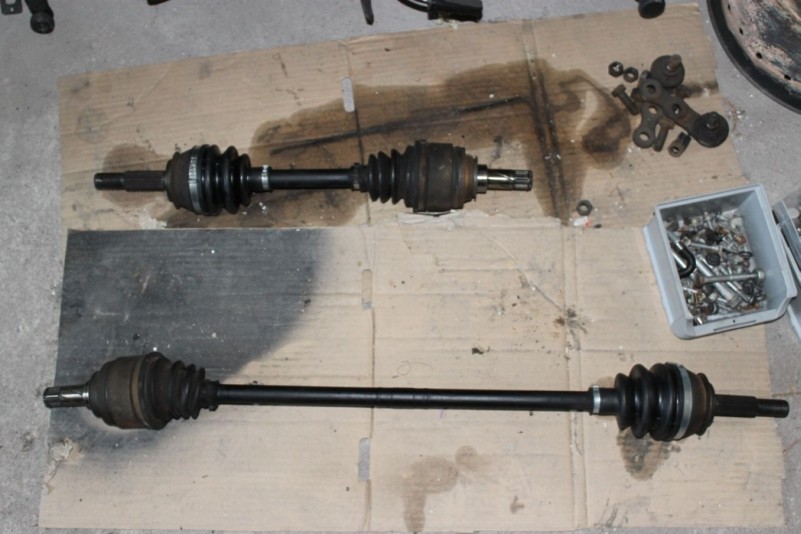 Die Antriebswellen sind jetz auch etwas aufgefrischt. Neue Manschetten aussen und die Wellen selber sind lackiert.