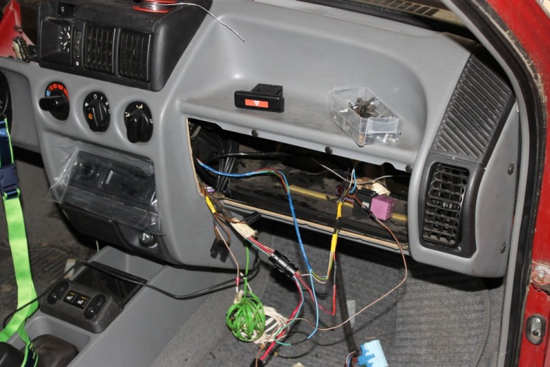 sieht noch etwas wüst aus, verschwindet aber alles hinterm Handschuhfach.