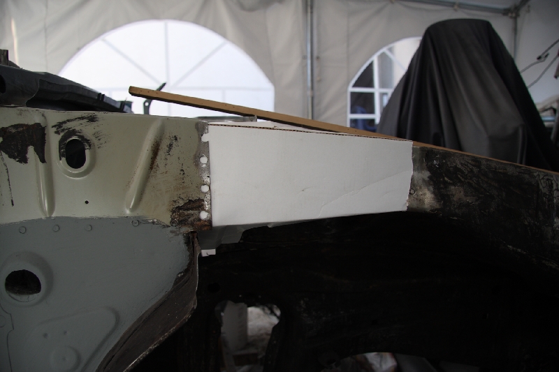 Und wieder einen cm weiter. Auf jeden Fall besser als die andere Seite, auch wenn ich immer noch nicht so ganz zufrieden bin... Und mit den Blechbearbeitungs-Tipps von Oldtimer-TV ging das einpassen des Blechteils diesmal wesentlich leichter von der Hand. Kann ich also nur empfehlen!