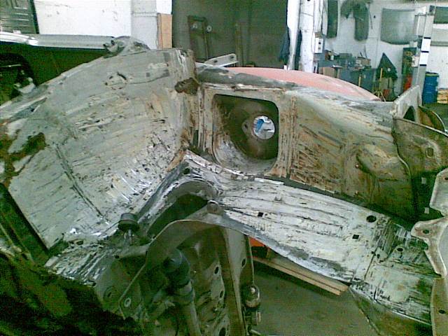 So wie es aussieht war da mal ein Paket von Irmscher dran. Davon sind aber nur die Stoßstangen vorn und hinten übrig geblieben. Die Kotflügel vorn haben an der Unterseite zur Tür hin Rost. Also vermute ich mal, daß da die Schweller von Irmscher dran waren. Auch an der Heckklappe sind die Löcher vom Spoiler.
