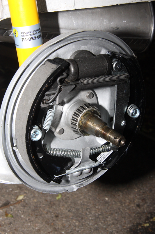 Nee, war ja alles abgeklemmt, deswegen wunderts mich ja. Und es sind ja nicht die Backen. Die Trommeln lassen sich ja drehen und auch rumwackeln. Deswegen gehe ich davon aus, dass es nur am Lager hängt.
