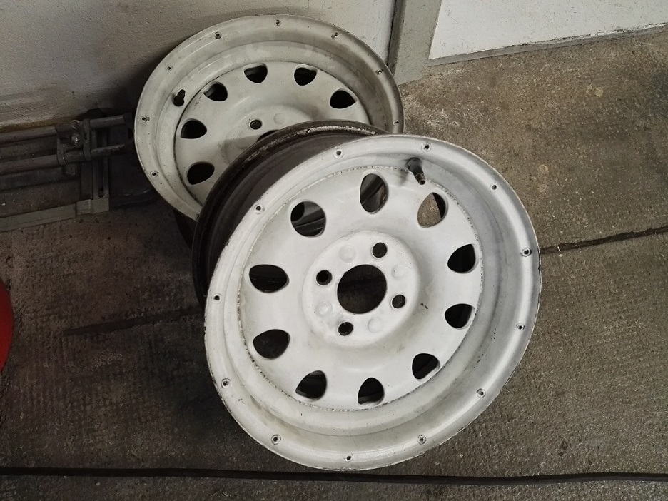 Zwei Felgen 7x13 Mattig 35€, waren schon Slicks drauf, deswegen die Löcher zum Anschrauben.