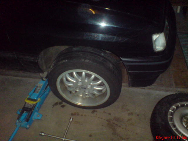 hier mal ein bild mit 7x15et25 mit 195/45, da sieht man ungefähr wie weit die rausstehen, und son 50er querschnitt is nochmal ne ecke grösser..... zumal das fahrwerk auf dem bild noch nicht wieder belastet ( bewegt) worden ist, hab mich nicht getraut damit aus der einfahrt zu fahren
