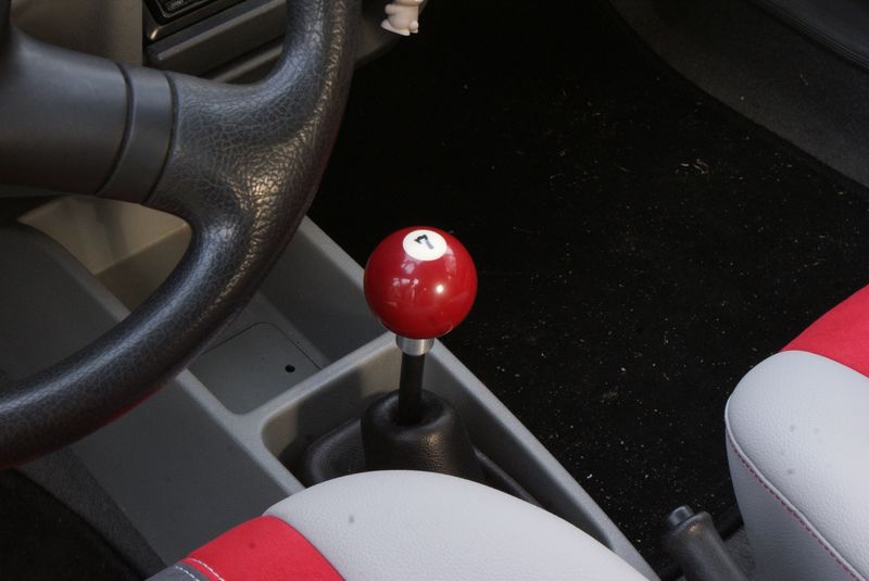 Heute gabs ein wenig von meinem Schatz selbstgebasteltes. Einen Schaltknauf, aus einer Billardkugel und etwas Alu angefertigt. Den Schalthebel haben wir ein wenig gekürzt, aber nur dezent. Auf die Türpin´s haben wir bissl schnick schnack draufgebaut.