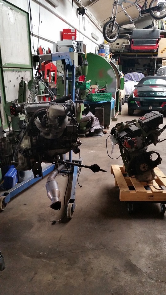 Motorschaden ! Der alte ist raus ein Ersatzmotor von Kollegen drin .