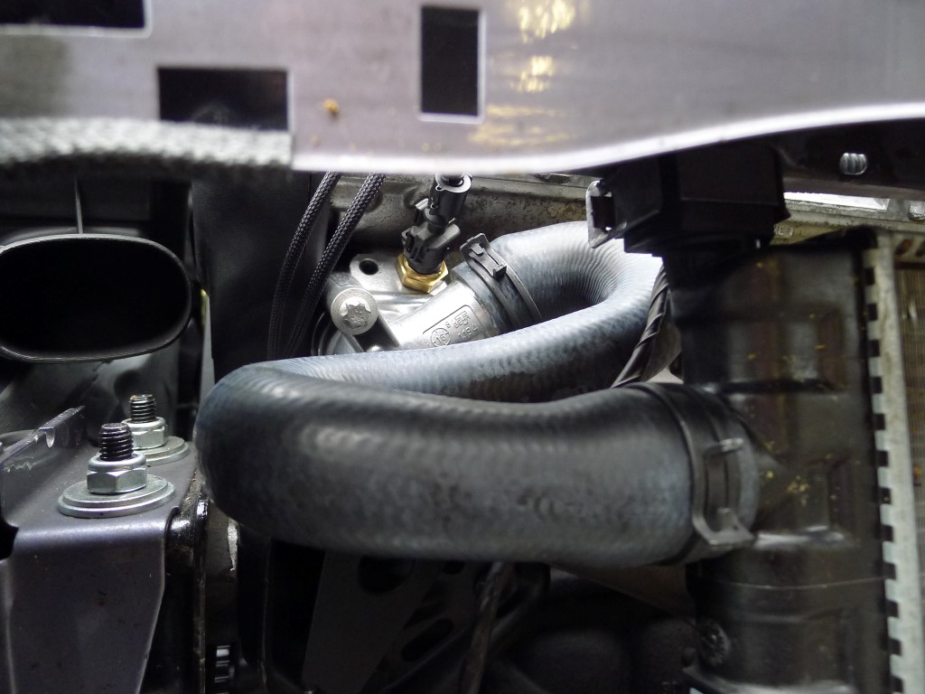 Ich suche mir also einen Platz im Motorraum, baue mir ein Halteblech, besorge ein 8-10-8 mm T-Stück und verschlauche alles. Zulauf, Rücklauf und Unterdruck. Praktischerweise war der Anschluss am BKV Rückschlagventil ohnehin frei. Den BKV Schlauch vom Vectra konnte man dank Heissluftföhn und etwas biegen übrigens auch übernehmen. Gaszug vom GSI passt 1:1.