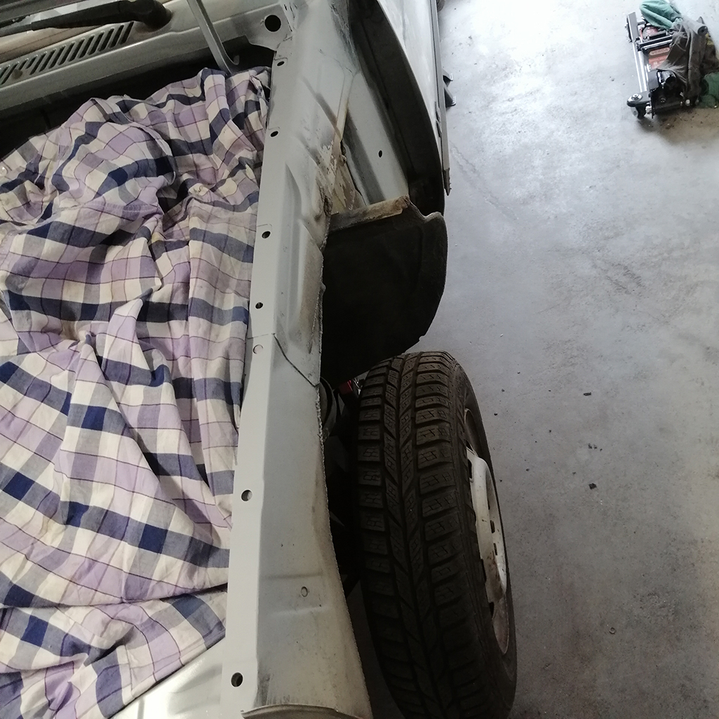 Auch hat er heute etwas Kosmetik bekommen, den ganzen Rost vorne weggemacht und versiegelt sowie mal eben schnell Grundiert damit nix weiter passiert. Der Rest muss der Lackierer machen später