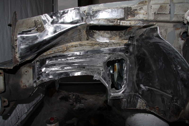 Momentan bin ich noch in den hinteren Radkästen zu Gange, erst dann wird dem Blech der Prozess gemacht. Und wie solls anders sein hab ich noch ein Loch gefunden...