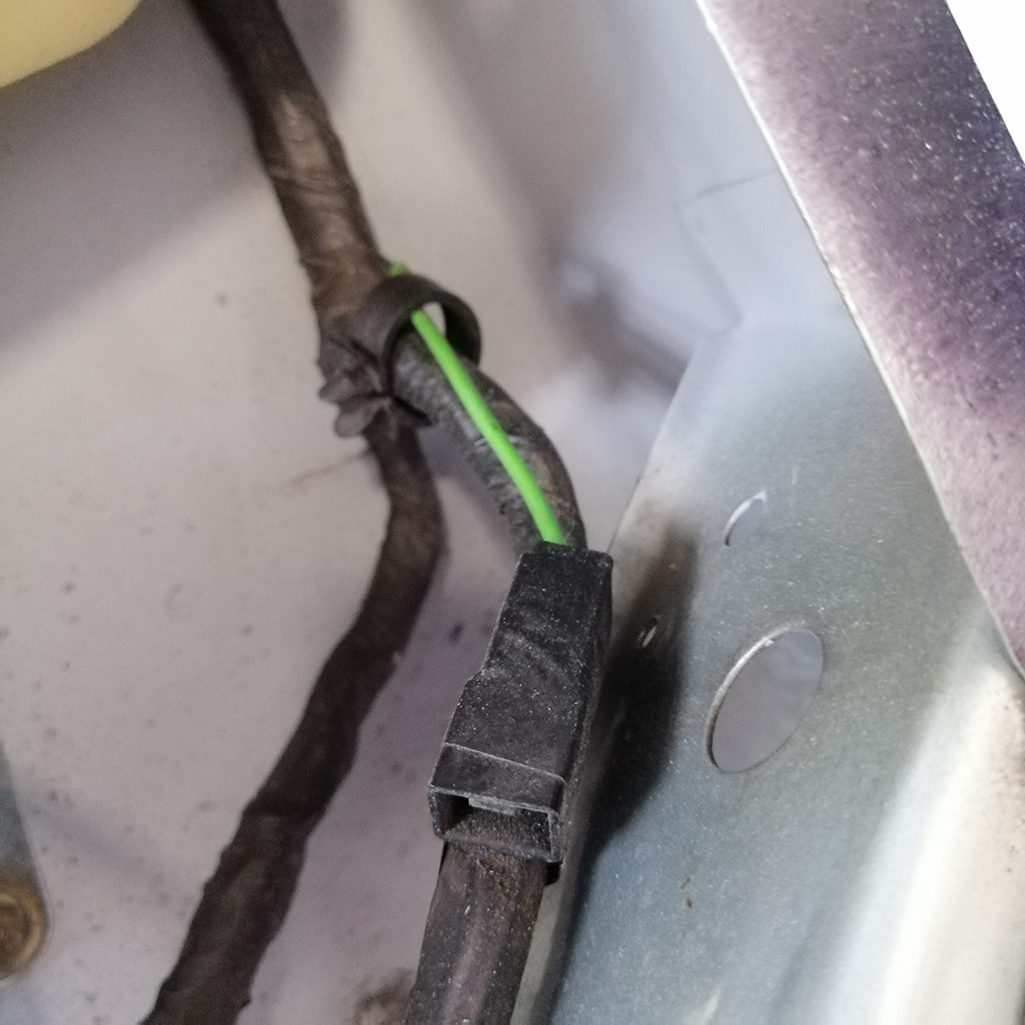 Geht durch ein Loch in der Spitzwand rein und sitzt dann überkopf unterm Batterieblech/Wasserkasten.