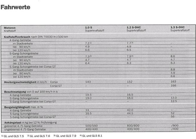 Im originalen Opelprospekt wurden auf jeden Fall unterschiedliche Fahrwerte für die 1,3-Liter Normalmodelle und die SR/GT-Modelle angegeben.