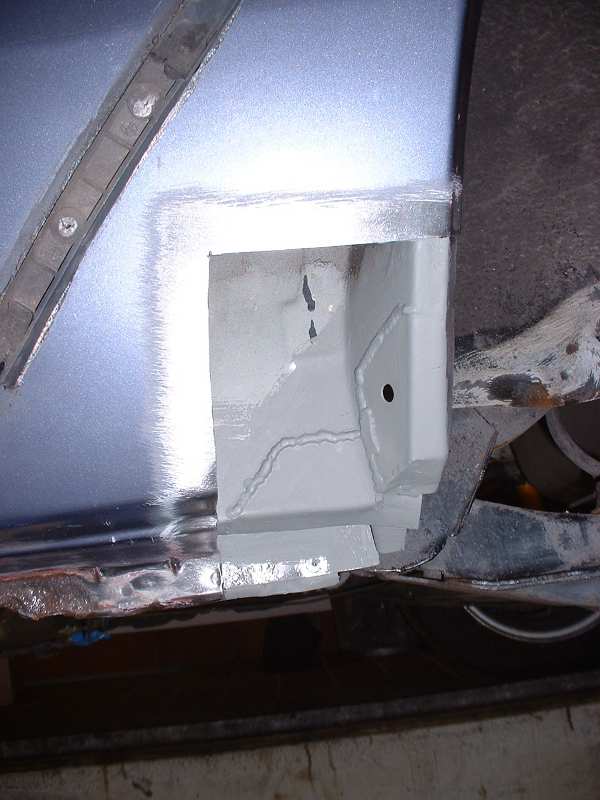 Die schönsten Schweißarbeiten hab ich mir ja zum Schluss aufgehoben. Gestern hab ich dem Längsträger hinten links endlich das aufbereitete Vorface-Spenderteil incl. Federteller (Danke Jens! ;) ) eingepflanzt. Für mich ein weiterer kleiner Sieg. :top: Nach dem verschleifen sahs dann fast so aus als wärs nie anders gewesen.